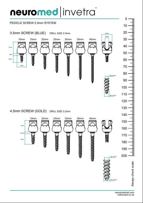 The invetra™ system is the only Pedicle Screw Fixation system designed and manufactured solely for veterinary use with a range of sizes from 2.0mm up to 5.5mm.